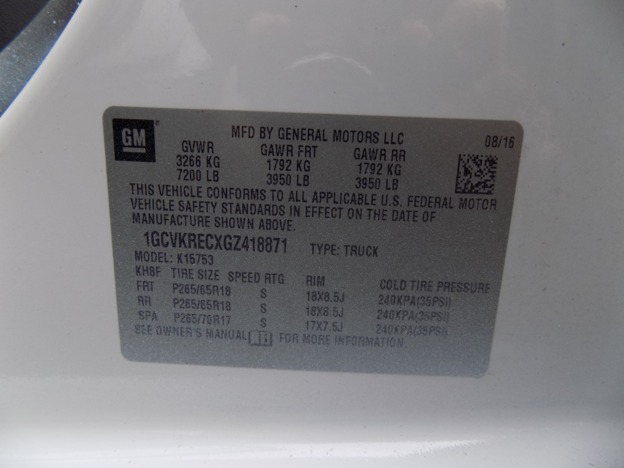 - 1GCVKRECXGZ418871