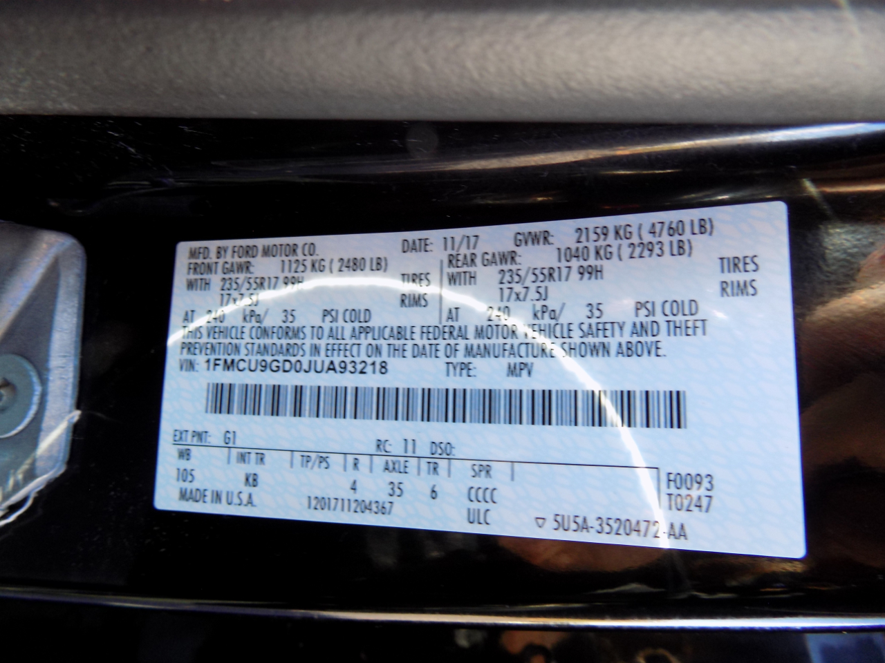 - 1FMCU9GD0JUA93218